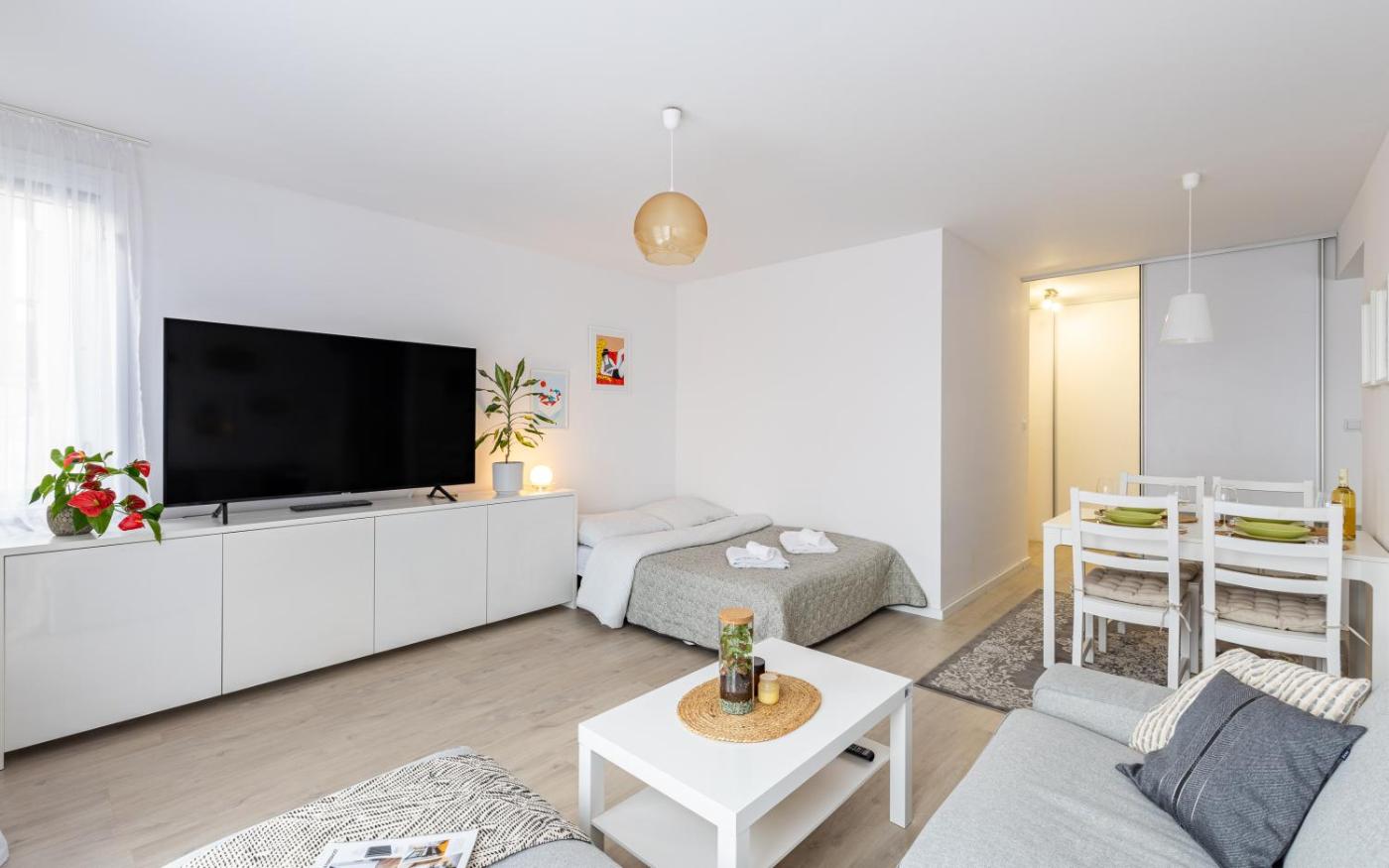 The spacious apartment features 1 bedroom, a flat-screen TV, a fully equipped kitchen with a dishwasher and an oven, a washing machine, and 1 bathroom with a shower. Towels and bed linen are provided in the apartment.