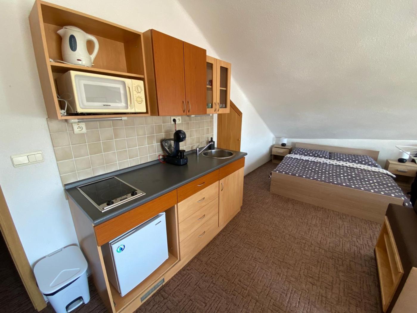 One-Bedroom Apartment. The apartment has 1 bedroom and 1 bathroom with a shower and free toiletries. In the kitchenette, guests will find a refrigerator, kitchenware and a microwave. This apartment features a tea and coffee maker, flat-screen TV with satellite channels, mountain views, as well as chocolate for guests. The unit has 2 beds. ;
