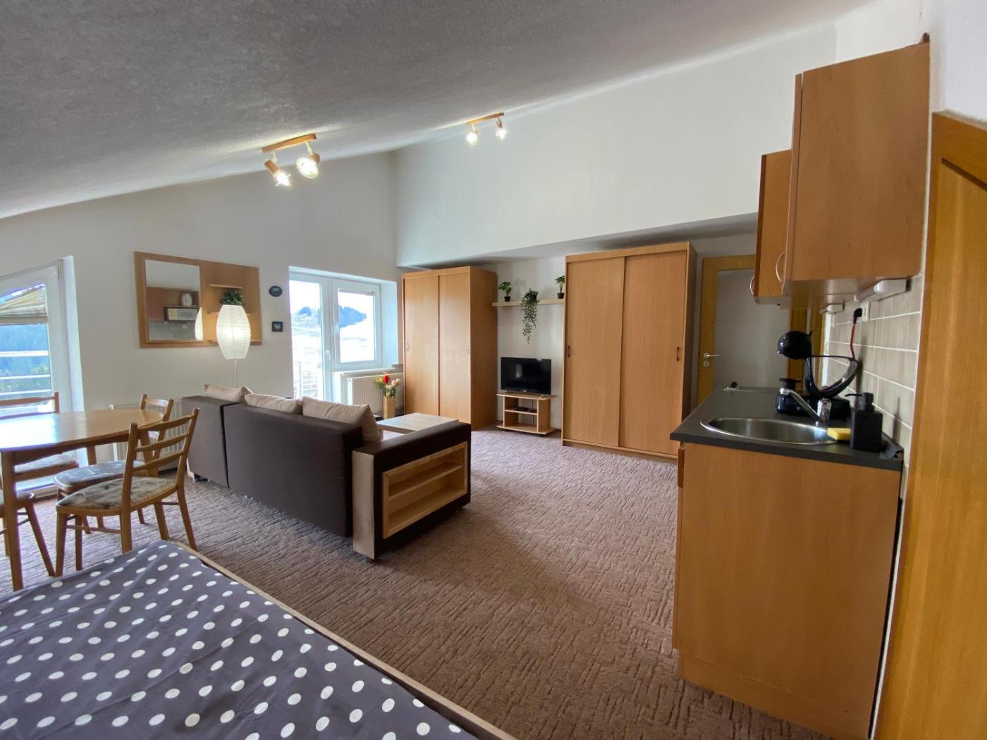 Offering mountain views, The Legits Apartments is an accommodation located in Donovaly, 25 km from Vlkolinec Village and 37 km from wooden church Hronsek UNESCO. There is an on-site restaurant, plus free private parking and free WiFi are available. Featuring family rooms, this property also provides guests with a childrens playground.