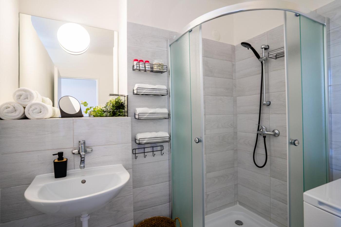 One-Bedroom Apartment. This apartment comes with 1 living room, 1 separate bedroom and 1 bathroom with a shower and free toiletries. Guests can make meals in the kitchen that features a stovetop, a refrigerator, a dishwasher and kitchenware. This apartment has a washing machine, flat-screen TV with cable channels, city views, as well as fruit for guests. The unit has 2 beds.