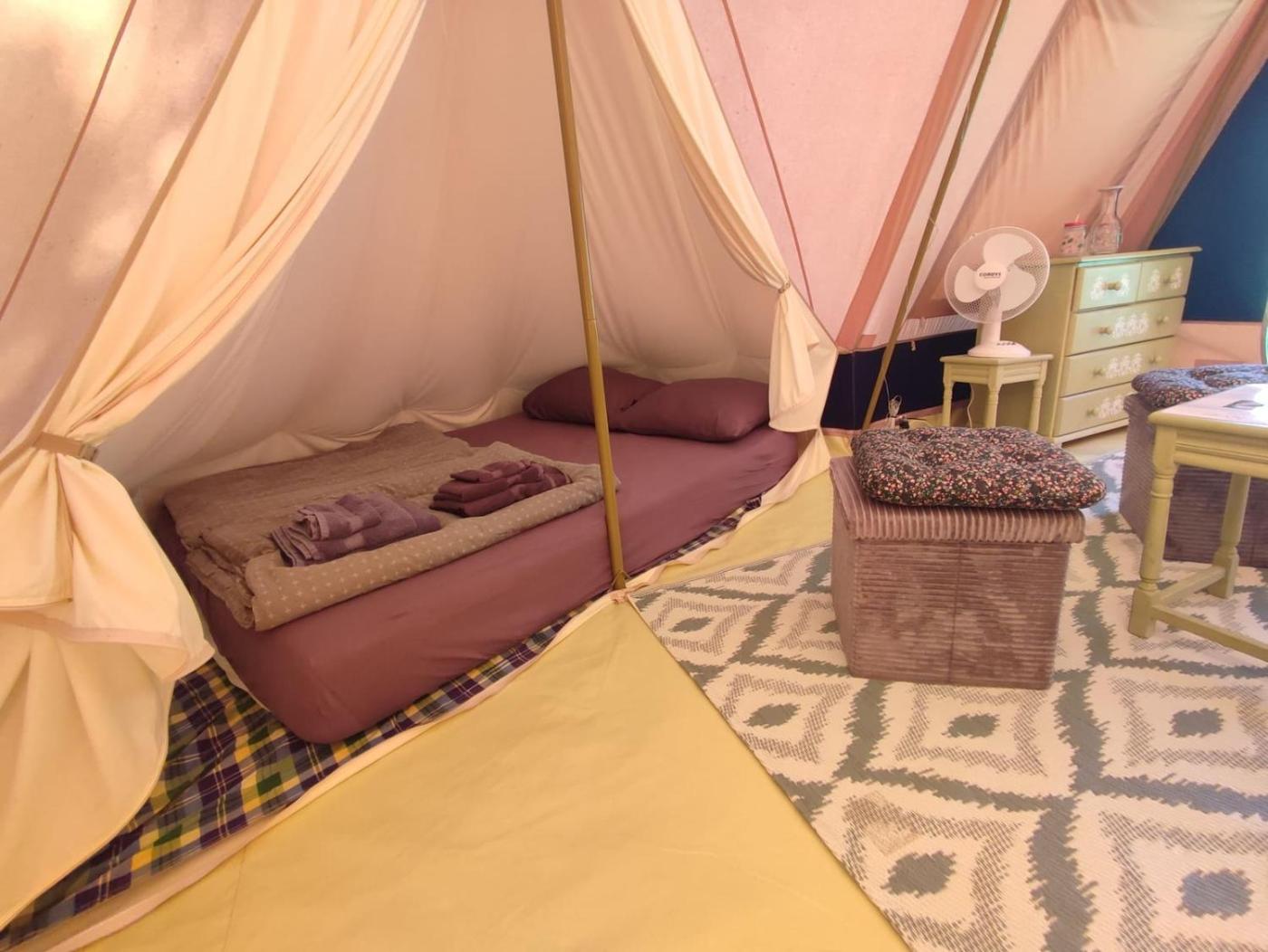 Towels and bed linen are provided in the luxury tent.
