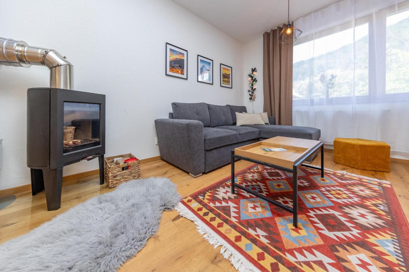 The apartment with a balcony and mountain views features 2 bedrooms, a living room, a flat-screen TV, an equipped kitchen with a dishwasher and a fridge, and 1 bathroom with a walk-in shower. This apartment is allergy-free and non-smoking.