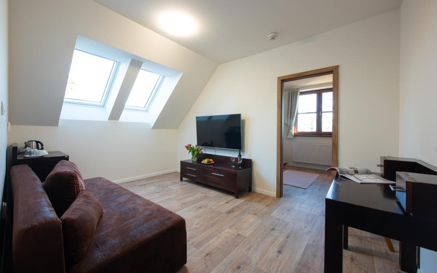 Deluxe Apartment. This apartment features 1 living room, 1 separate bedroom and 1 bathroom with a bath or a shower. The apartment features a wardrobe, an electric kettle, a sofa, a carpeted floor, as well as a flat-screen TV with satellite channels. The unit has 2 beds. ;
